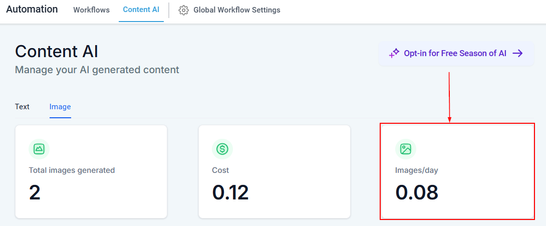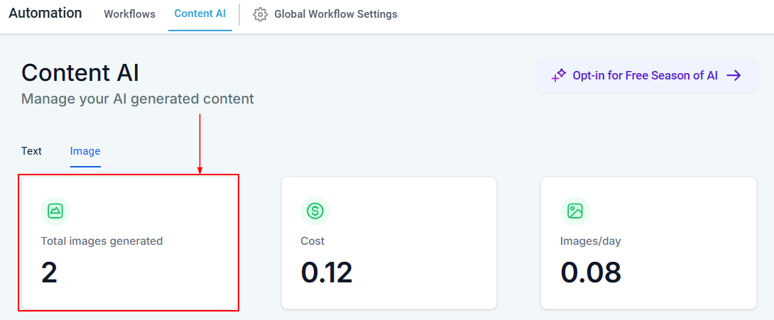 Here you will be able to see the total number of images generated by Content AI within your CRM system across all sections.