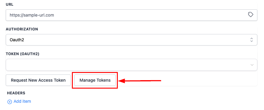 Once OAuth2 is selected, you can either use an existing token by selecting it from the dropdown menu or request a new one.