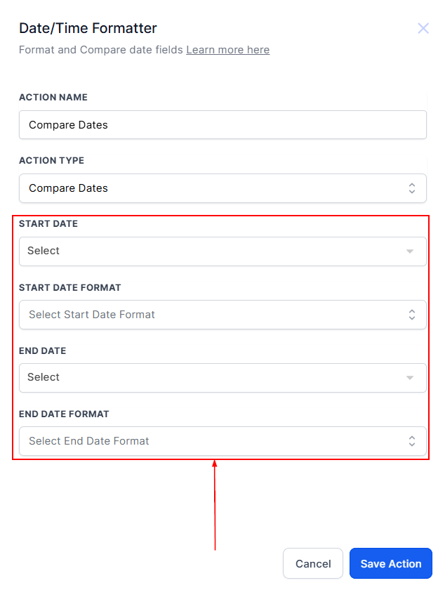 π NOTE: When comparing dates the follow-up dropdowns will include the Start date, Start date format, End Date, and End date format.