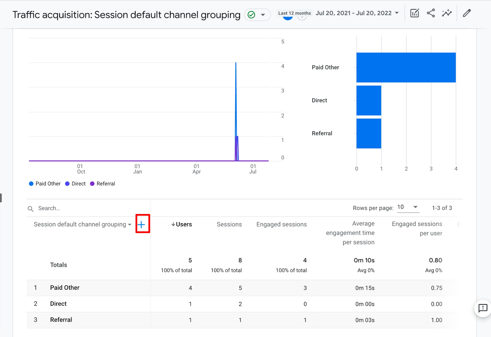 How to find in GA4 if the setup is working or not? Please go to Google Analytics, and visit the GA4 property. In the navigation, please go to Reporting > Acquisition Reports. If the setup is done correctly, it will show up here and we would say add filters of source and medium (marked in red).