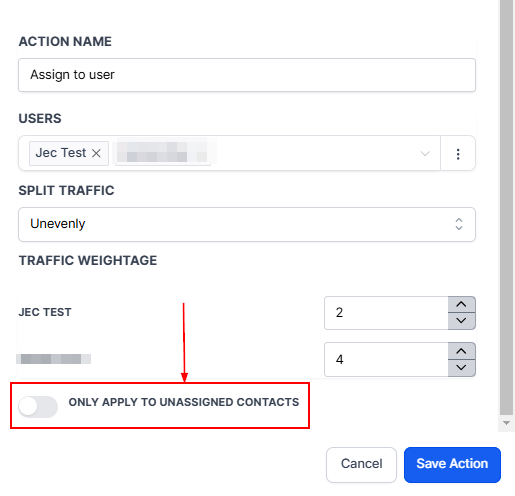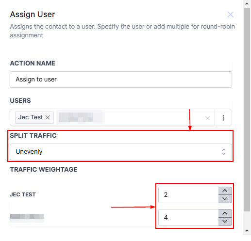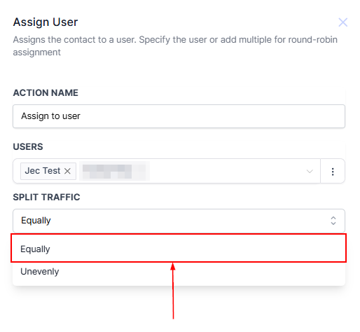 After assigning multiple users to your contacts, the Split Traffic feature becomes active to determine how you want the traffic to be distributed among the selected users.