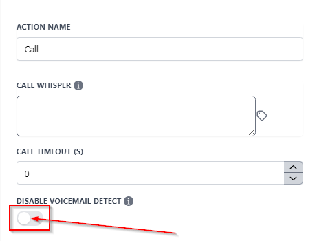 However, you can enable voicemail detection and leave a message by toggling on the Disable Voicemail Detect option under the Call event settings.
