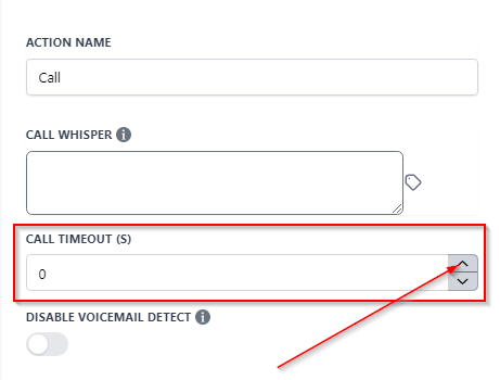To set the call timeout limit, use the up and down arrow buttons on the right side of the box, or type a number into the given field.
