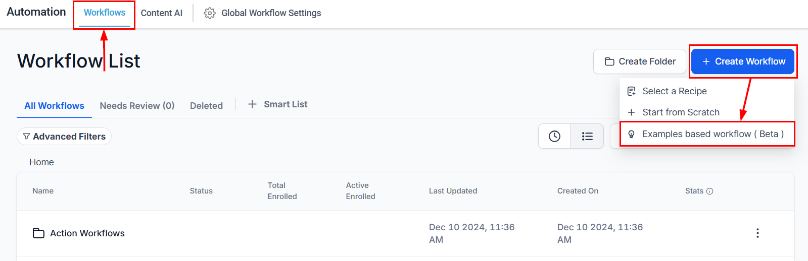 Begin by creating a new workflow in the Automation section of your account or accessing an existing Objects workflow from the list.