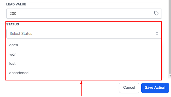 Choose the status you want to add the contact to, either; Open, won, lost, or abandoned.