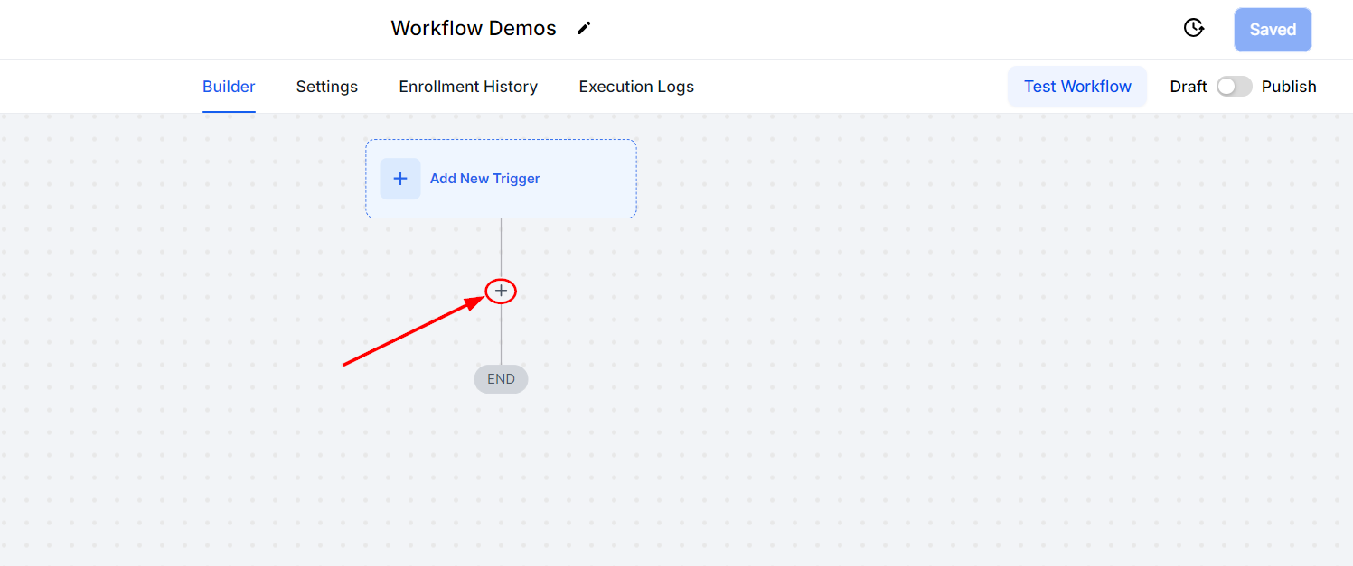 Next, create a new workflow or select a workflow from the list to access its editor and establish the necessary workflow trigger (if necessary). Click the β+β sign to add a new action.