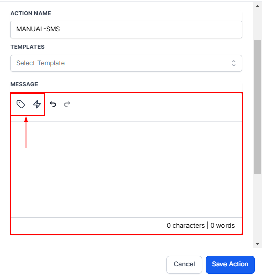 Once you have added the Assign To User action to your workflow or campaign, you can add manual action steps for that user. To add a manual SMS action, click on the β+β icon and select Manual Action To SMS.