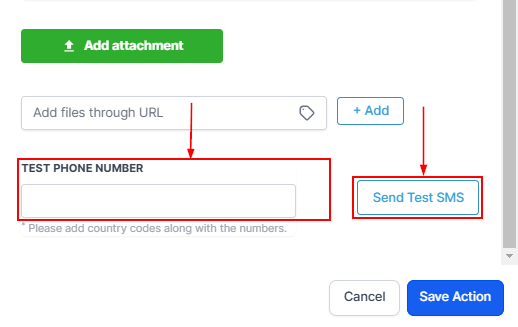 Before the action step is added to the workflow you can add a phone number to test what the SMS would look like when it gets to the customer. Remember to add the country codes of the number you are using for the test run.