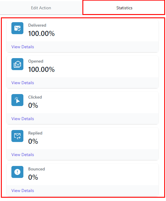 Once your workflow is live and you’ve had customers run through, you’ll be able to access the email delivery statistics. The Email Delivery Statistics provides metrics on sent emails, including the number and details of emails delivered, opened, clicked, replied, bounced, accepted, stored, and rejected by contacts. Additionally, it reveals the number of contacts that have complained/reported the email.