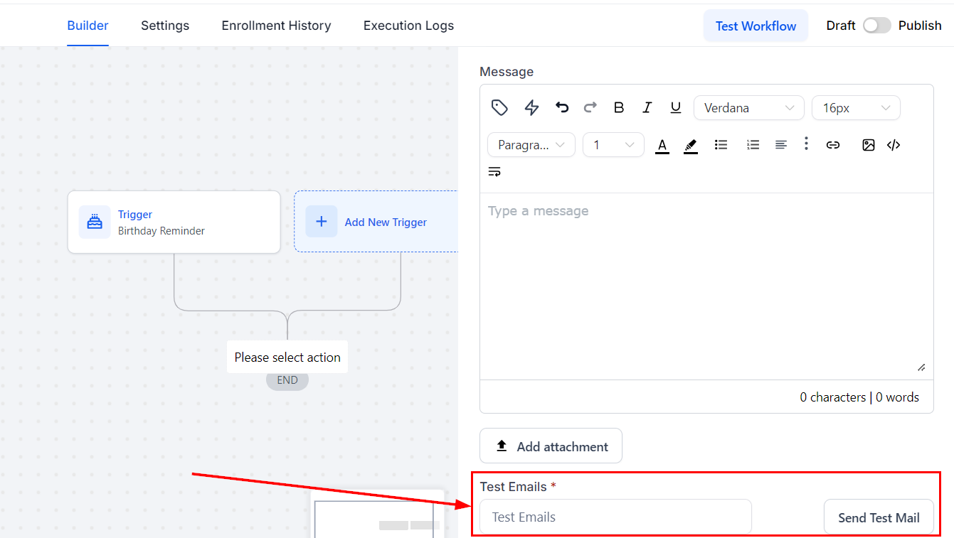 The Send Email workflow action is a great feature designed to streamline your communication processes. Automating email delivery based on specific triggers ensures timely and efficient follow-ups while reducing manual effort. Whether you use customized templates or craft messages directly within the action. With detailed delivery statistics, you can monitor performance and optimize your email campaigns.