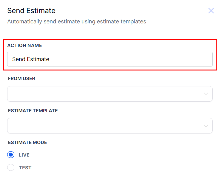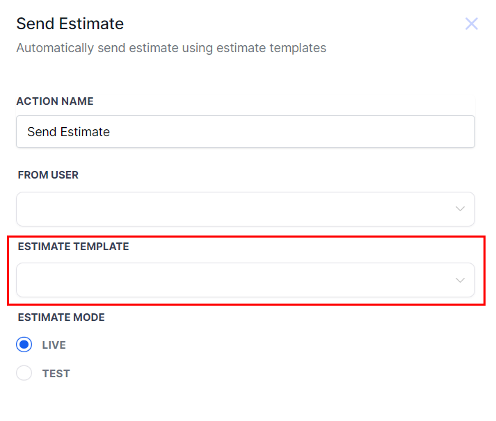 The Send Estimate action enables you to automatically send personalized estimates to your customers in response to specific events, such as the creation of opportunities or transitions between stages. This ensures a seamless and timely delivery of estimates based on key triggers in your workflow.