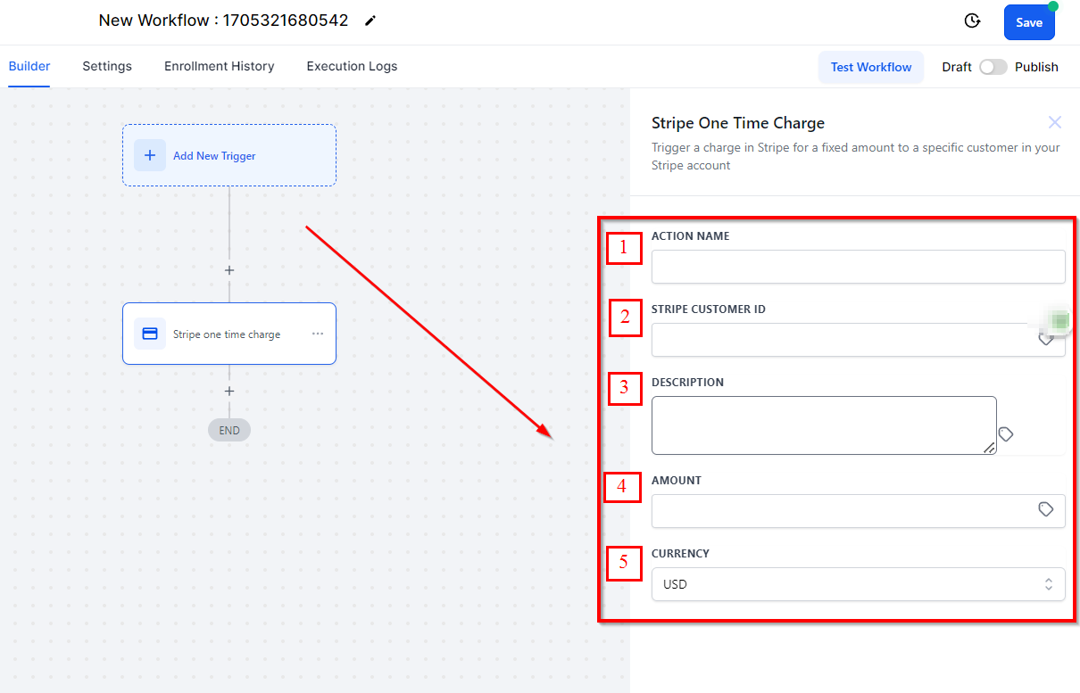 In the designated areas provided, users can input essential information when implementing the Stripe payment feature.