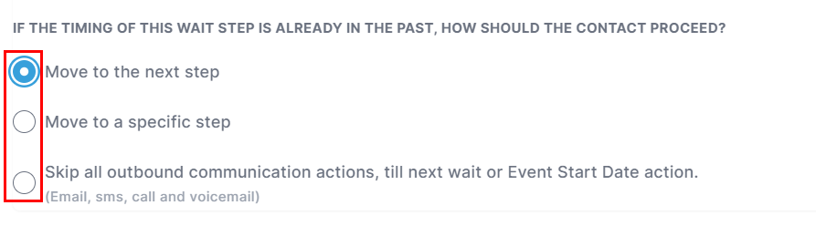 These options are designed for scenarios where user or contact actions are required to progress through the automation. The available options include: