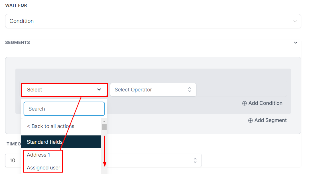 This feature allows you to pause the automation until the contact completes or updates a specific field of information. To configure this, select the contact detail you wish to monitor.