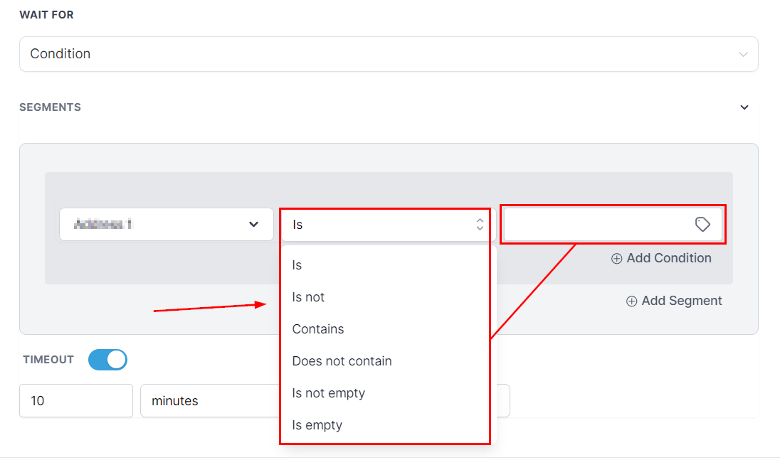 If the condition needs to be met in a specific schedule you can set a timeout by toggling the option and setting the timeframe.