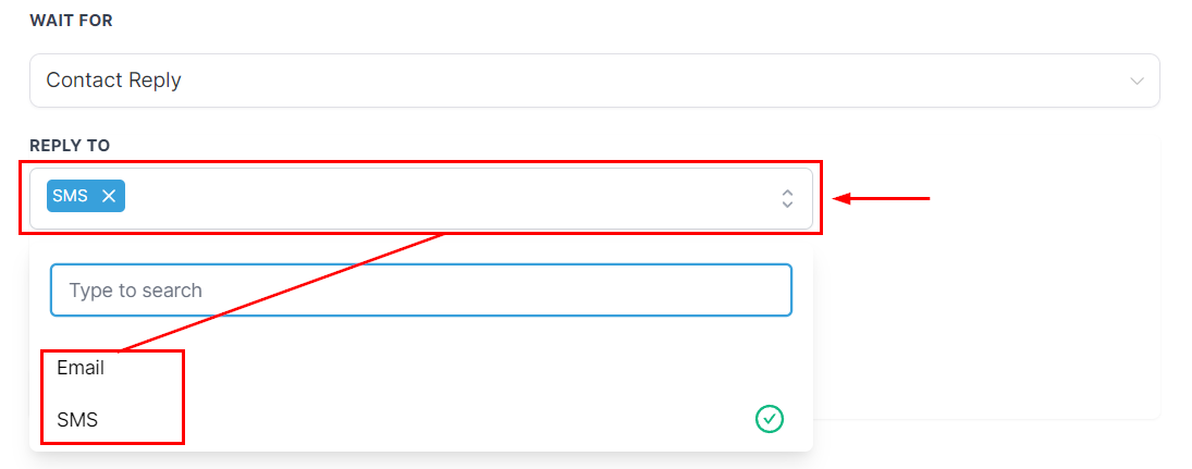 This option will keep the contact in the wait step until they respond to a previously sent message. To use it select the step you want the contact to have replied to.