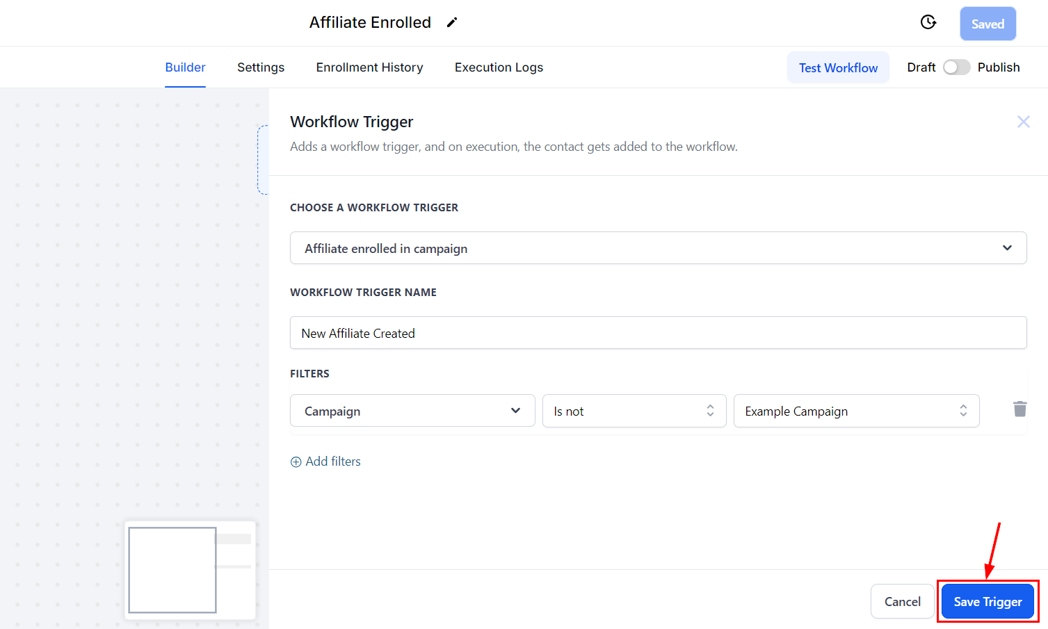 How Does the Affiliate Enrolled In Campaign Trigger Work in a Workflow?