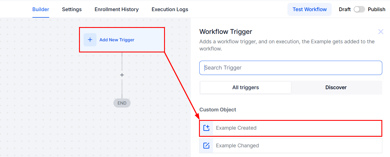 In this guide, we will use an Examples custom object to demonstrate how you can use the Custom Object Created Trigger.