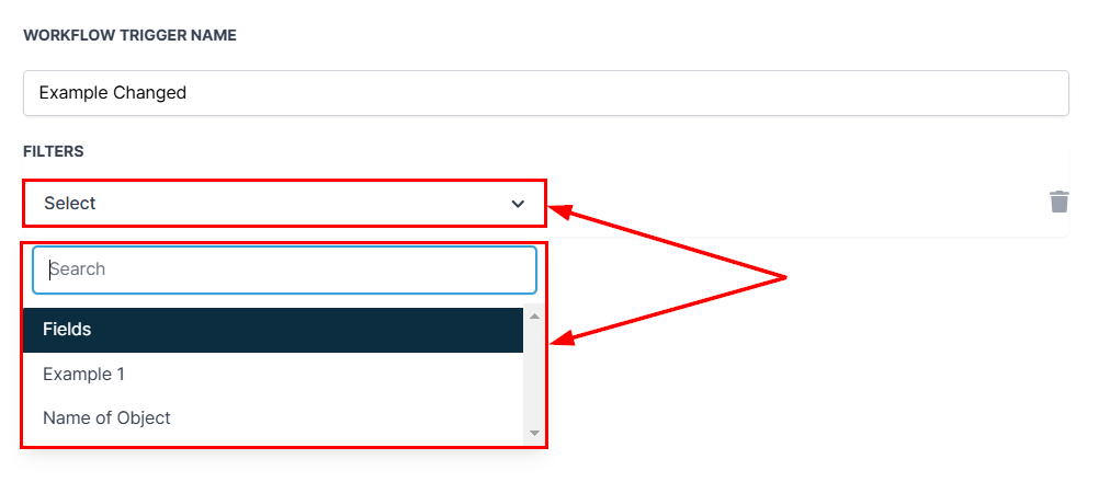 Add filters to specify the conditions by which the workflow should be activated. You will be able to filter by the primary object field name and the name of the object.