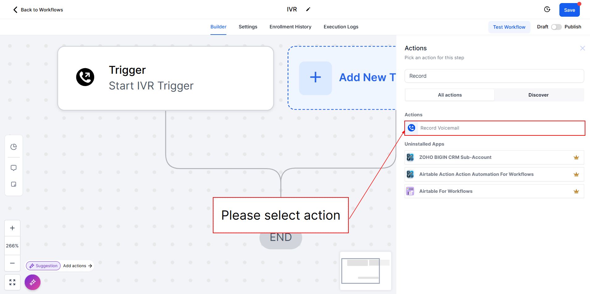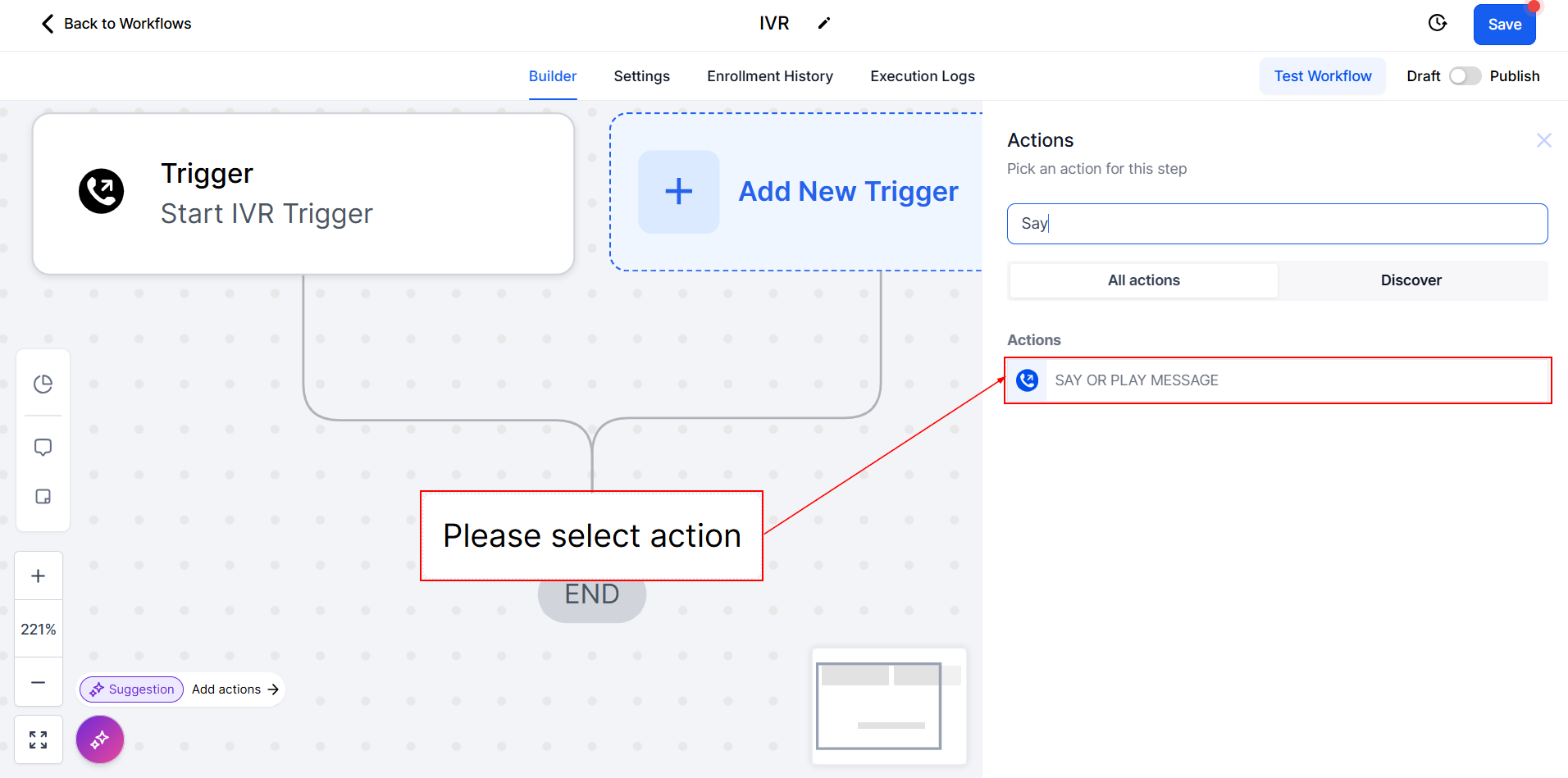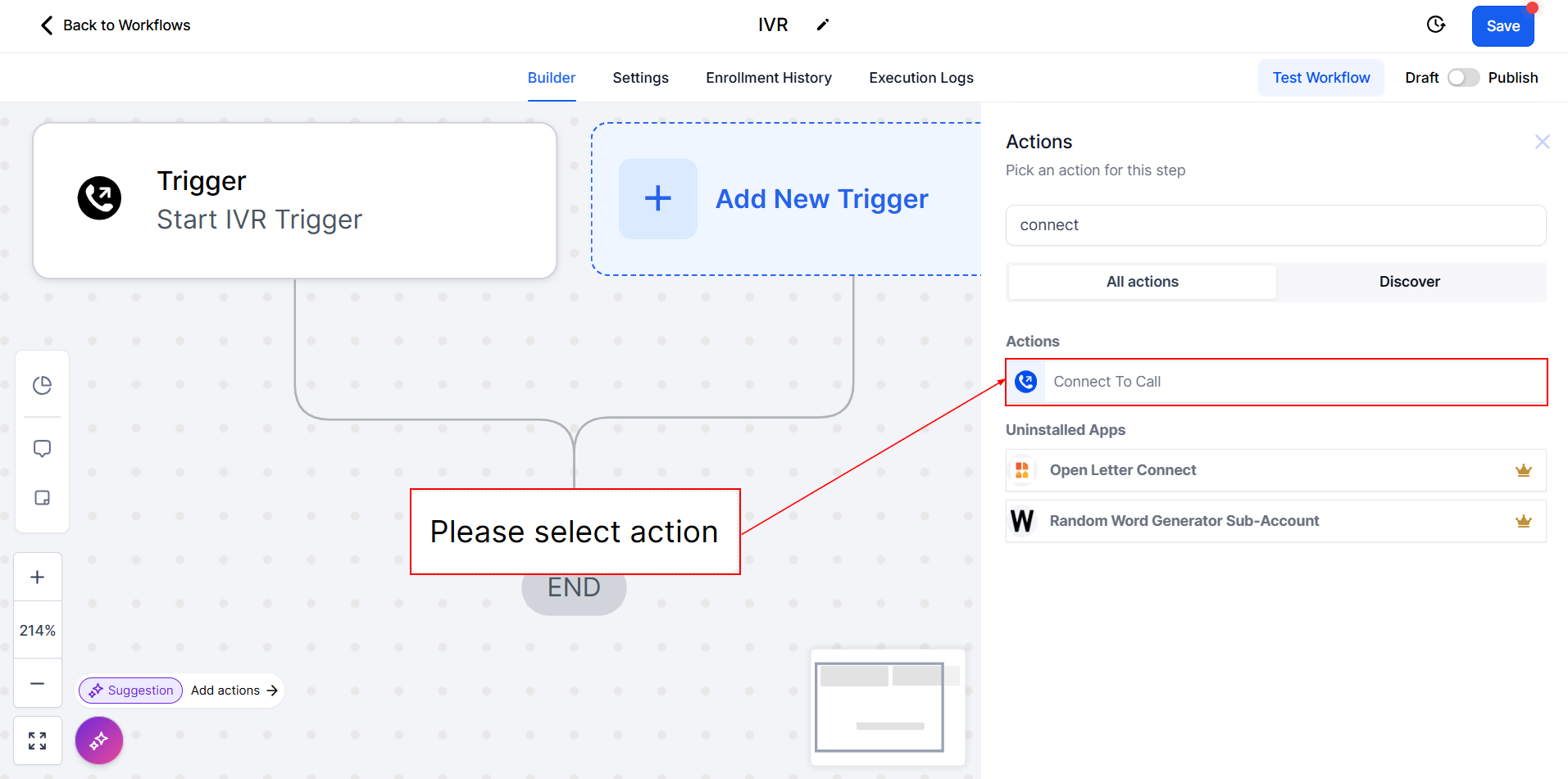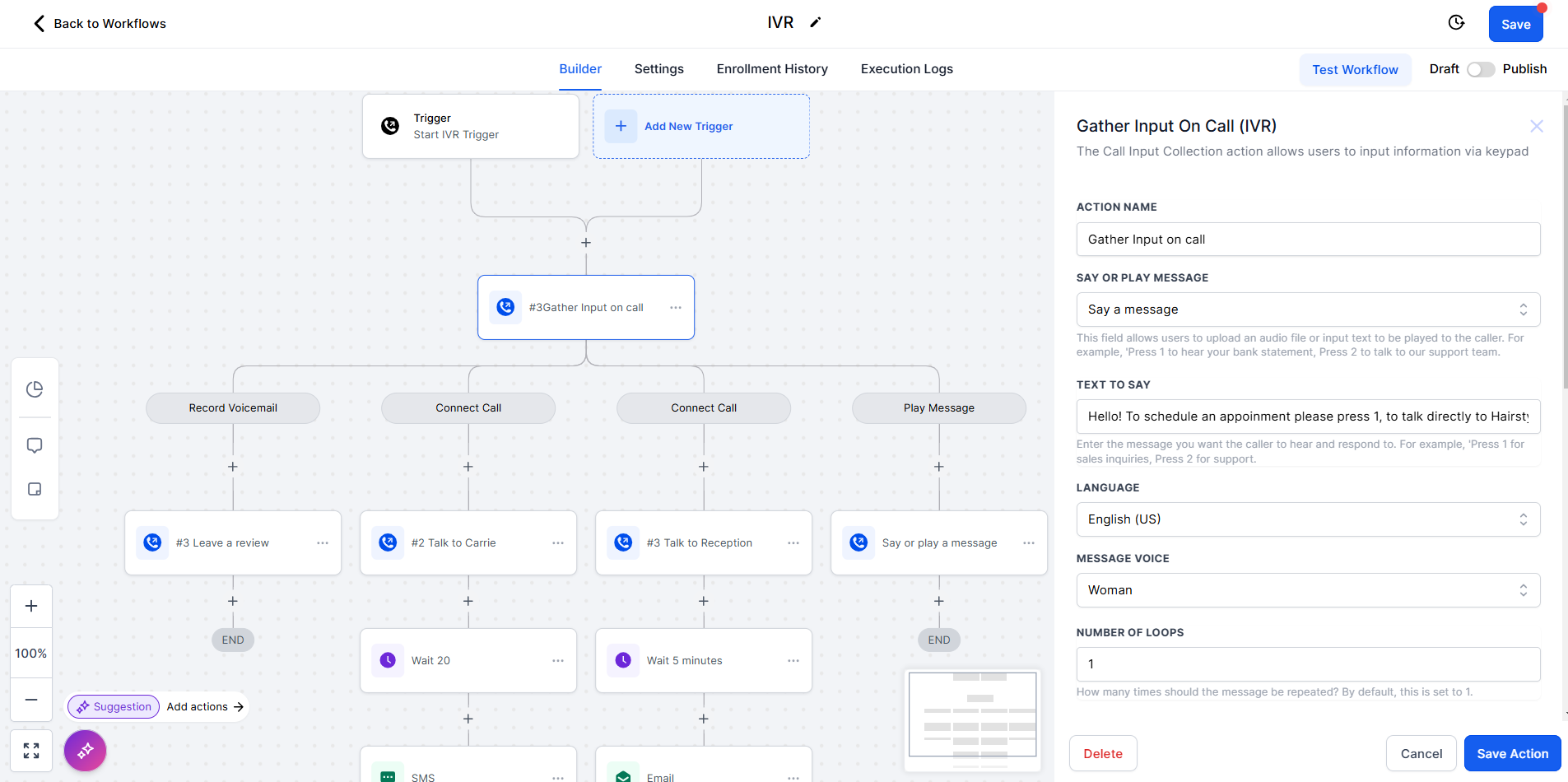 Workflow Publication: Ensure that you've published the workflow before customers call the designated phone number. This ensures that the IVR system functions as intended when customers initiate calls.