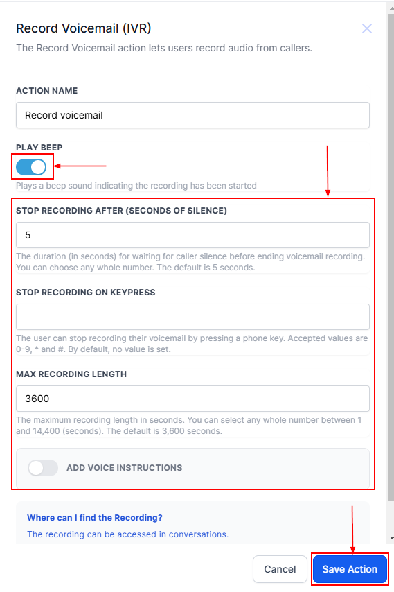 Record Voicemail Action (IVR)
