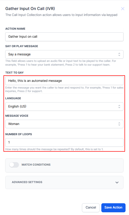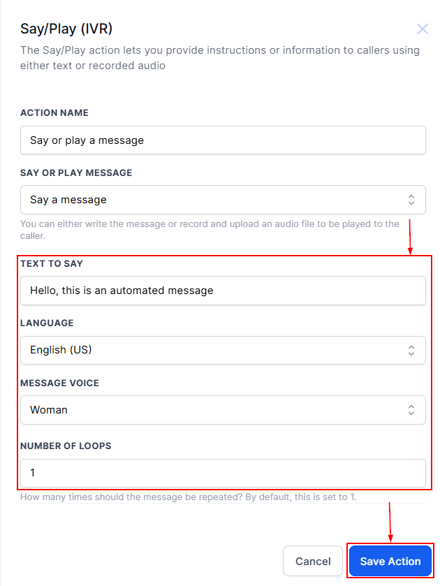 Say Or Play Message Action (IVR)