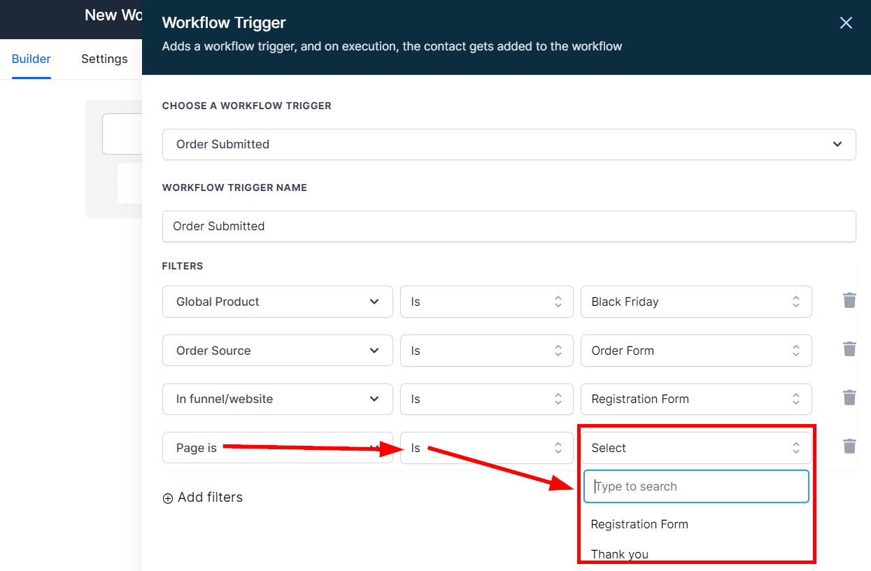 For example, choosing the "Registration Form" page in the "Registration Form" funnel as shown below, this workflow will only trigger when a customer fills this specific page.