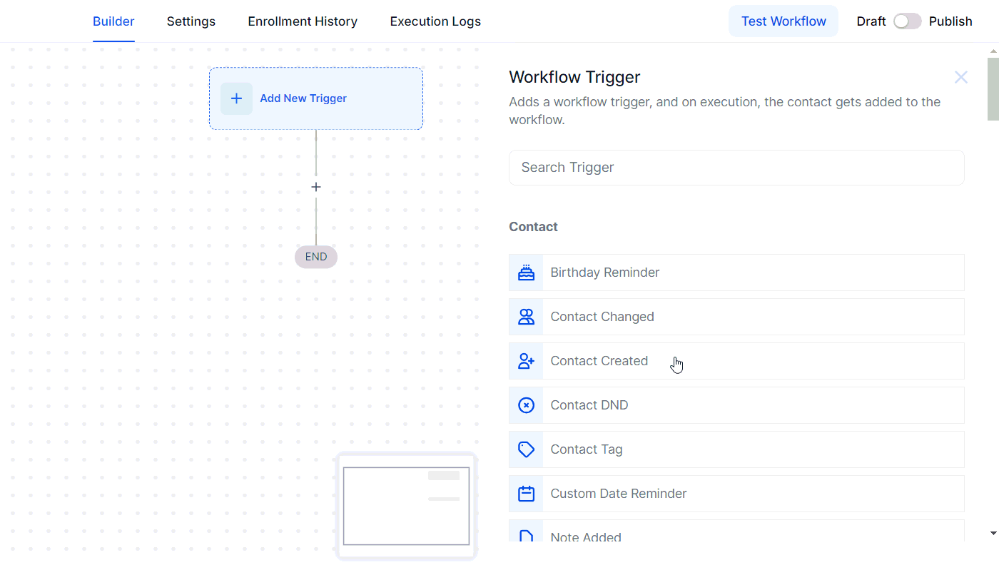 To get started with this trigger, navigate to the Workflows section within your account, then opt to edit an existing workflow or create a new one.