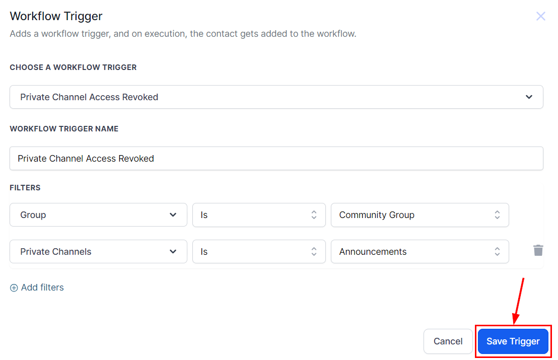 Further refine the trigger by applying additional filters to target specific private channels, if desired.