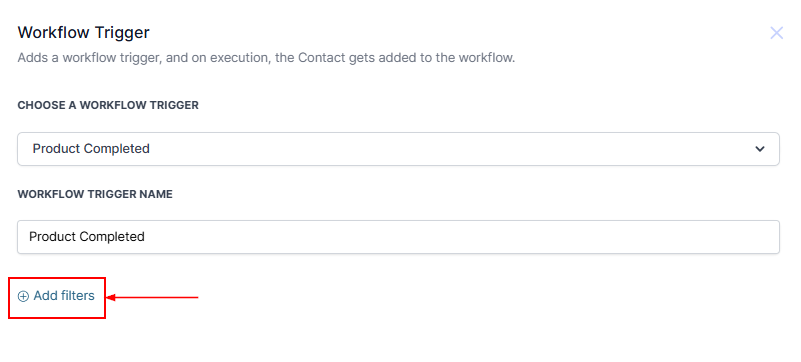 Within the Trigger, you can configure the filters by selecting Add Filters.