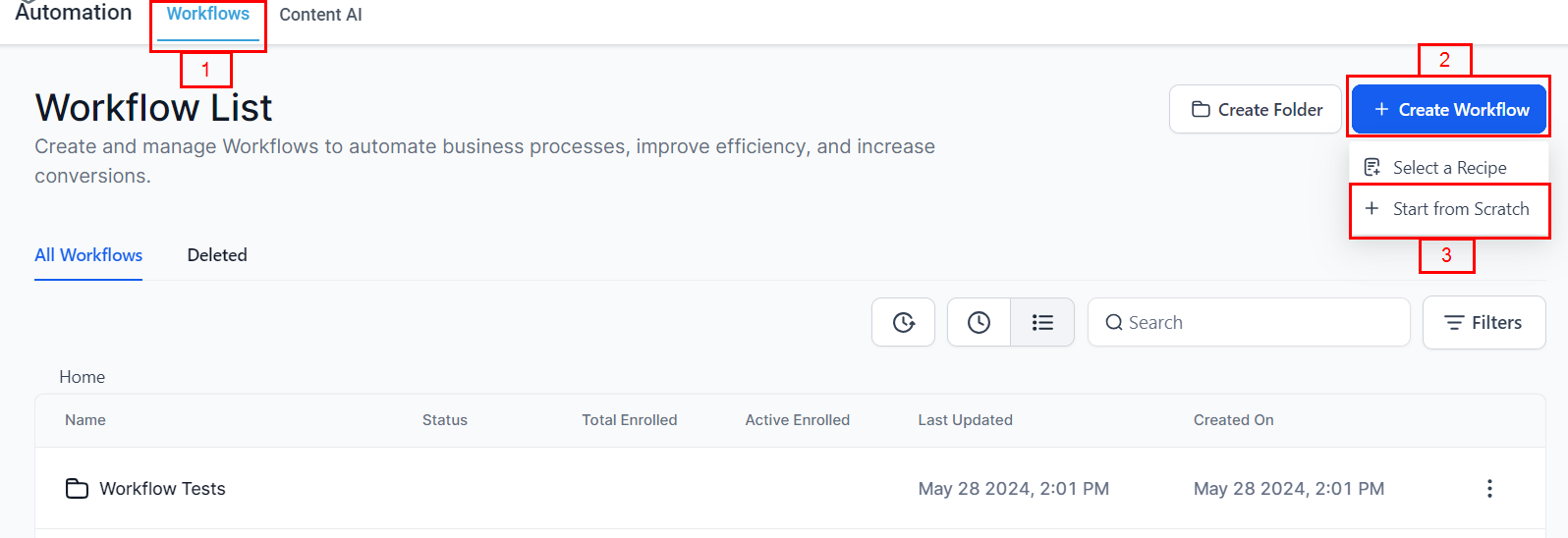 Navigate to the automation section in your CRM.