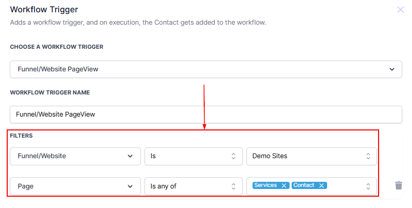 Add filters to specify the funnel or website and the particular pages you wish to track.