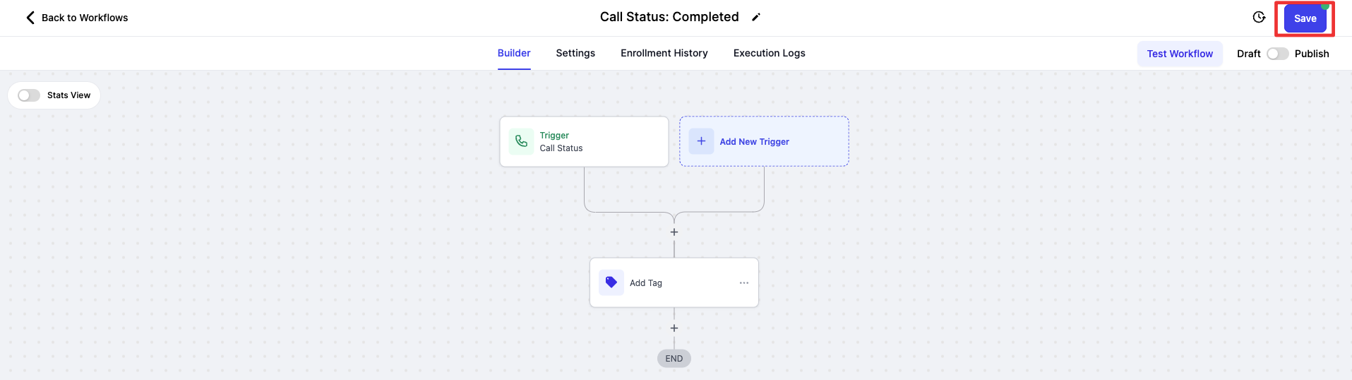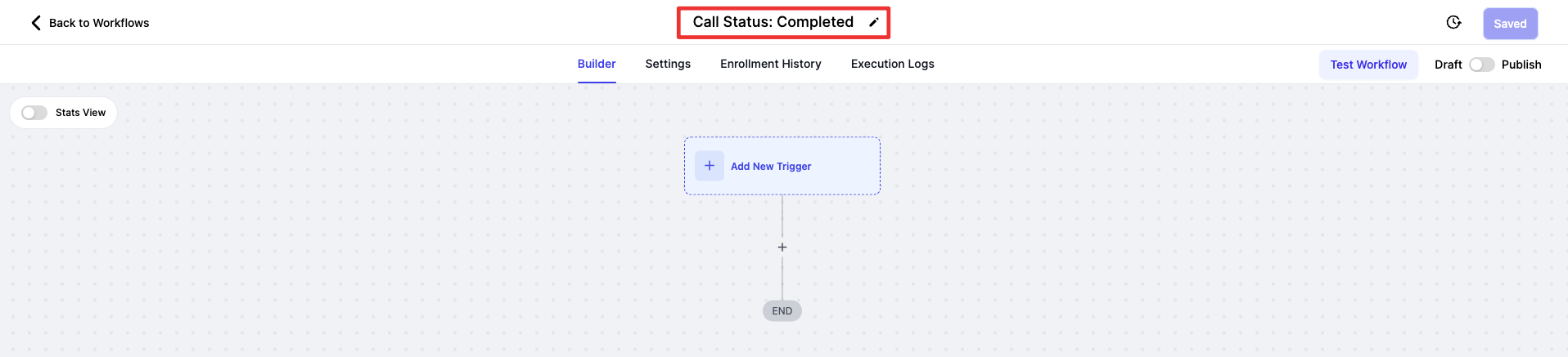 Name Your Workflow: Give your workflow a descriptive name, such as "Call Status: Completed," for easy identification.