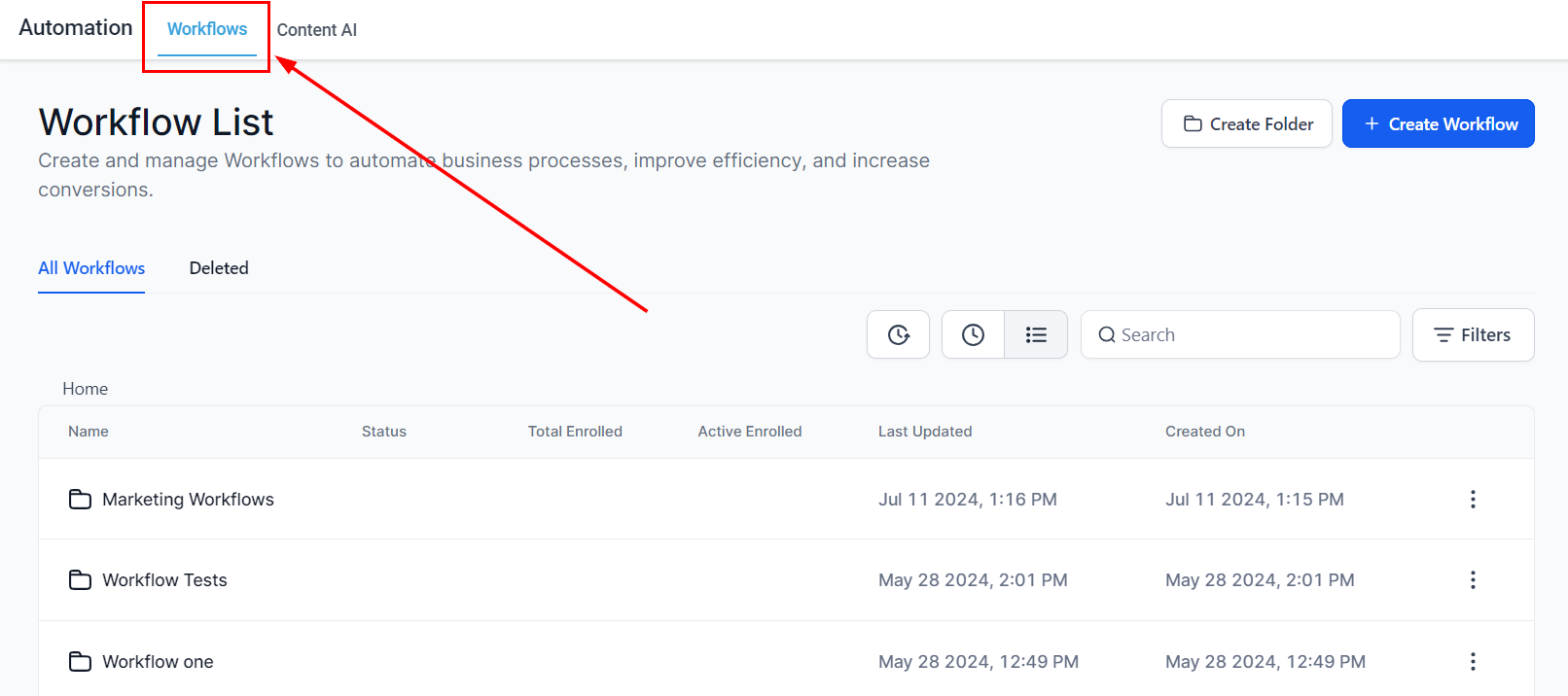 Navigate to the Workflow List Page from your Account Dashboard.