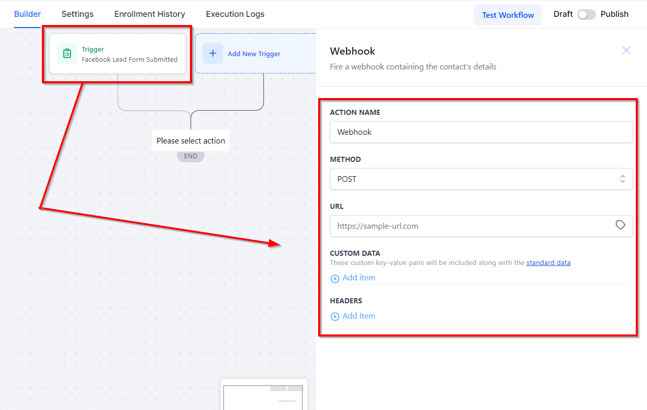 Create the Webhook: Within your CRM, navigate to the automation or workflow section and select the option to create a new webhook. You will need to specify the trigger event and the data points you wish to export.