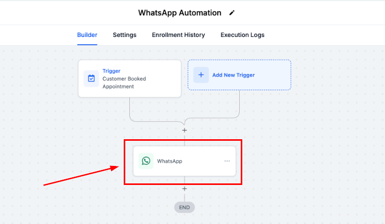 Navigate to the Workflow tab inside the Automation section and open any workflow that includes a WhatsApp action.
