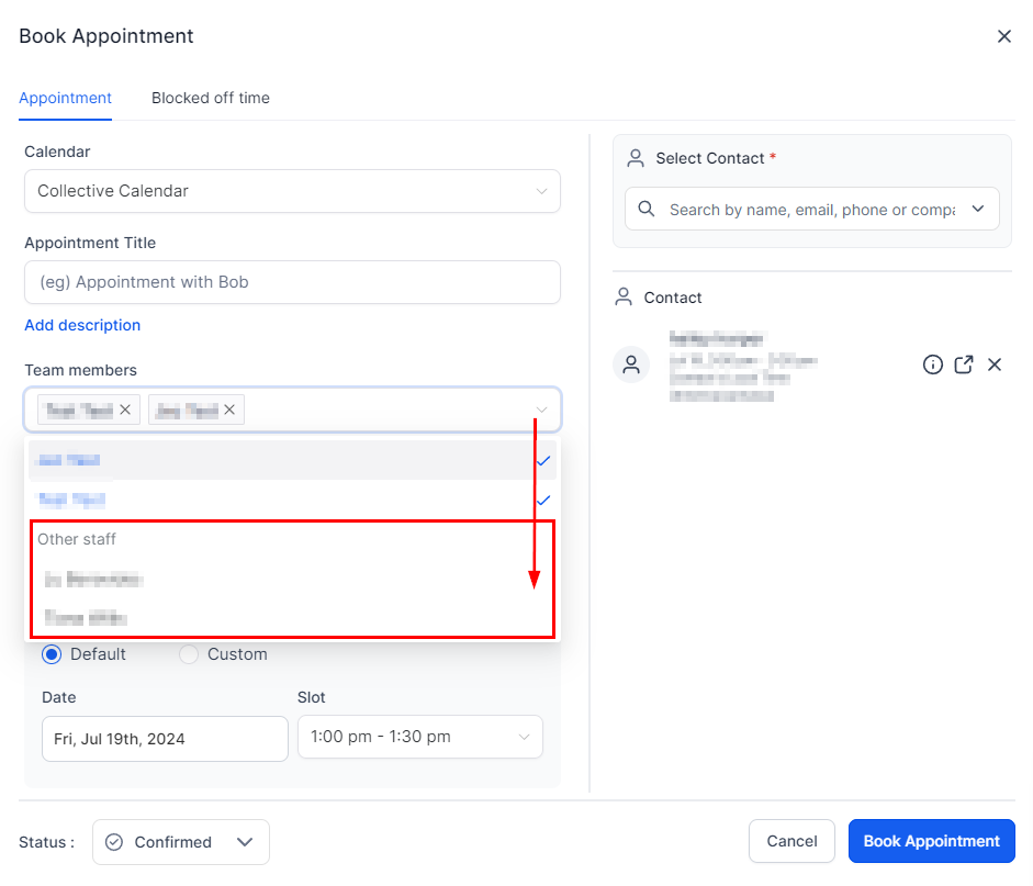 Under Other Staff, you can select any team members that arenβt part of the calendar.