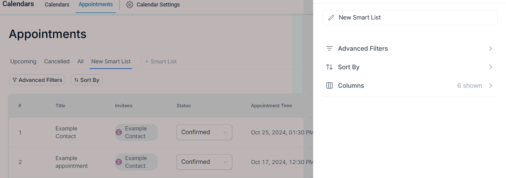 These filters enable you to customize your Smart List further, so you can efficiently locate and manage the specific appointments that meet your criteria.