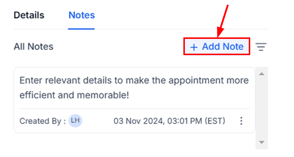 Within this section, you can add a new note to the contact to document key interactions, observations, or important follow-up points. Simply click "Add Note," type the relevant information, and save it to update the contactโs profile with the latest insights.