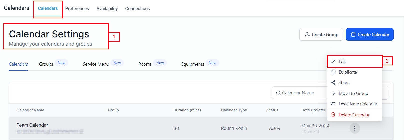 Go to the "Calendar Settings" section. Click the three dots next to the calendar you wish to modify, then select βEdit.β