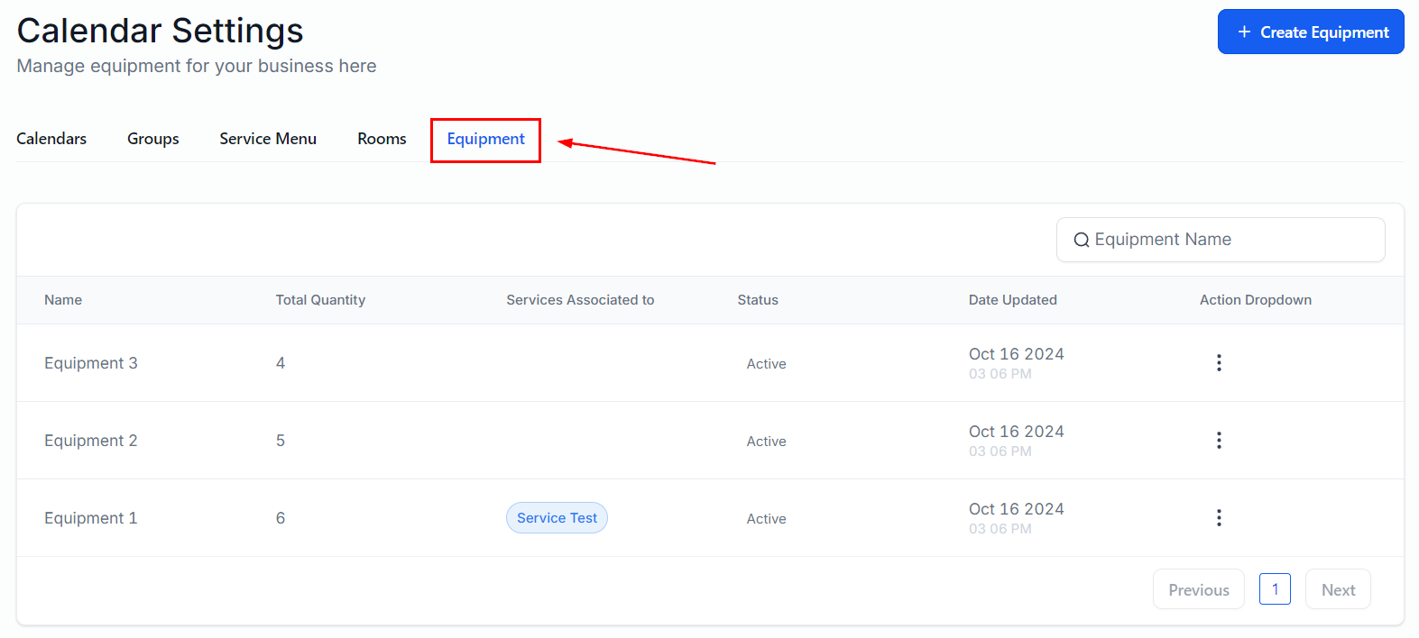 The Equipment is any tool, device, or machine you use to deliver your services. In this section, you can add and manage such tools, which the system will use to help you organize their availability when booking appointments.