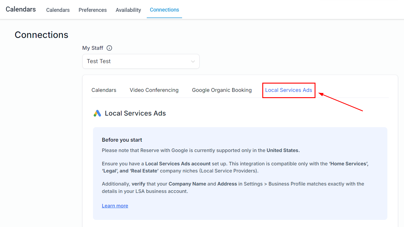Here you can manage your connection preferences for Google Local Services Ads.