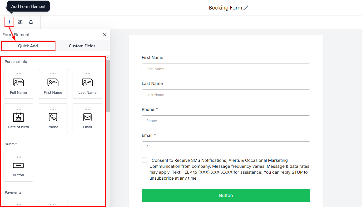 Accessing the Form Builder