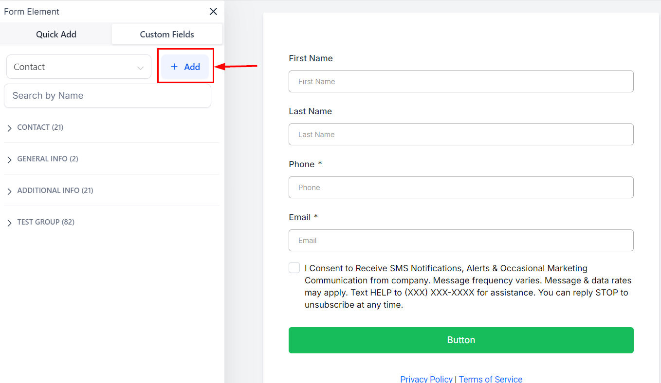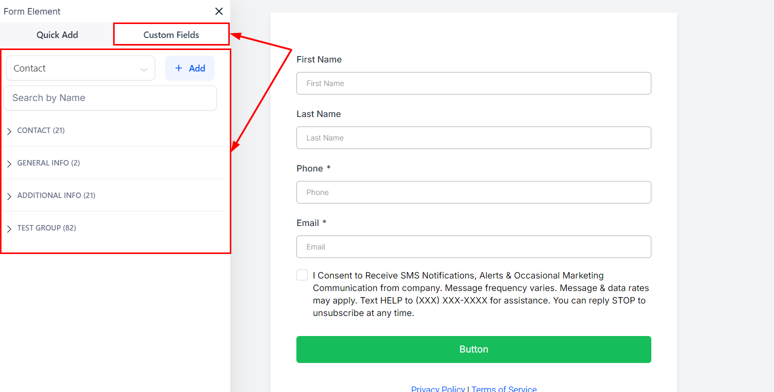 To add customized questions, utilize the 'Custom Fields' option.