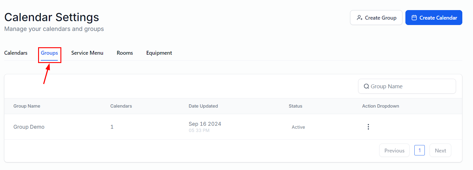 For a group of calendars, navigate to the Groups section within your Calendar Settings, and ensure a calendar group is created.