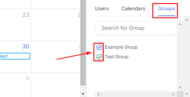 To see events for any of your group calendars, check the box next to it.