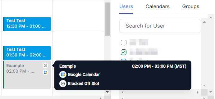 Hover over any appointment for a detailed snapshot, including event type, title, start, and end times. Stay informed with a simple hoverβno need to click.