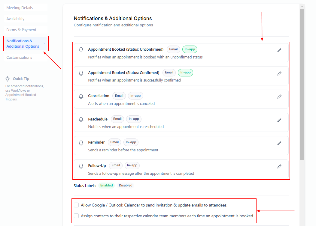 Turn on “Assign Contacts to Their Respective Calendar Team Members Each Time an Appointment Is Booked” to assign the contact to a specific team member when an appointment is booked. It helps in linking attendees directly to the appropriate team member handling the session.