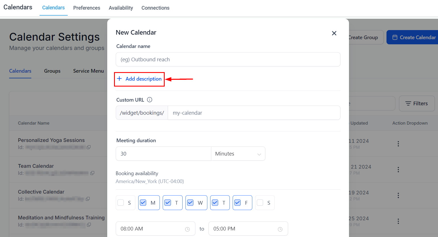 Description: Provide additional details about the calendar's subject, which will be visible to those scheduling appointments.