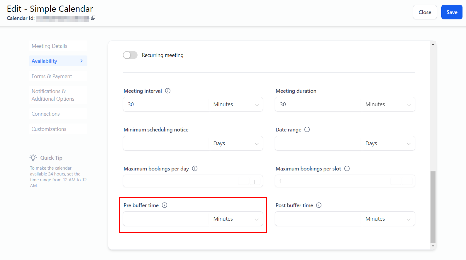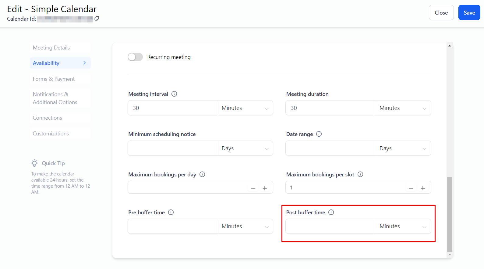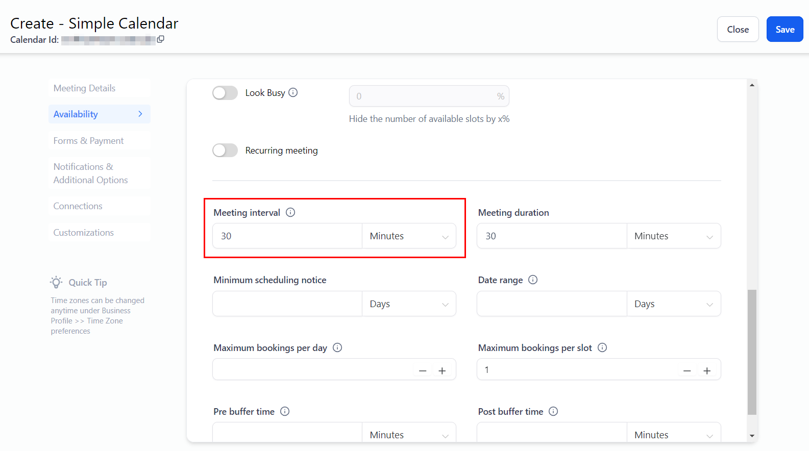 This setting determines the interval for available time slots. For instance, if you set a 30-minute interval, available time slots will be displayed every 30 minutes (e.g., 10:00 am, 10:30 am, 11:00 am).